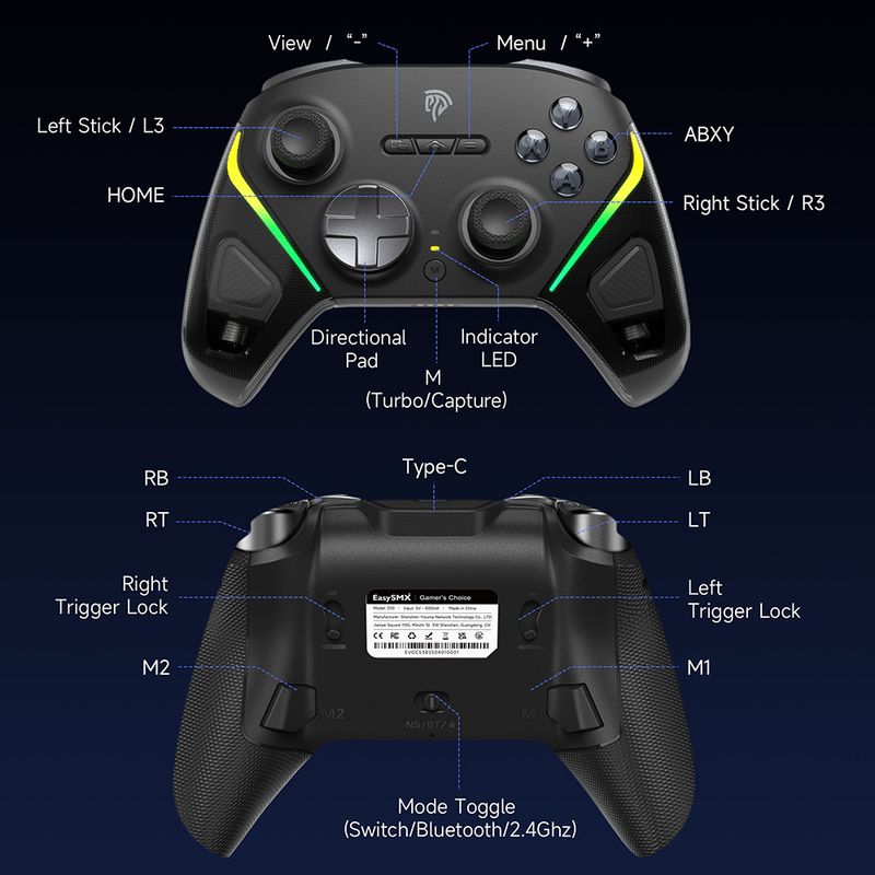 Full Mechanical Buttons: Equipped with full mechanical buttons, the controller ensures rapid response, crisp feedback, and excellent tactile feel, enhancing gaming precision and responsiveness.