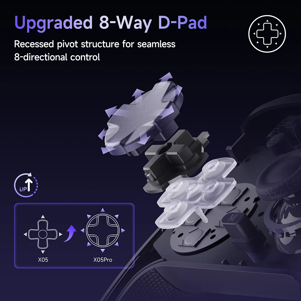 Upgraded metal-dome switches plus a sunken disc pivot give crisp, diagonal-perfect inputs—transforming the classic 4-way cross into an ultra-smooth 8-way command center.