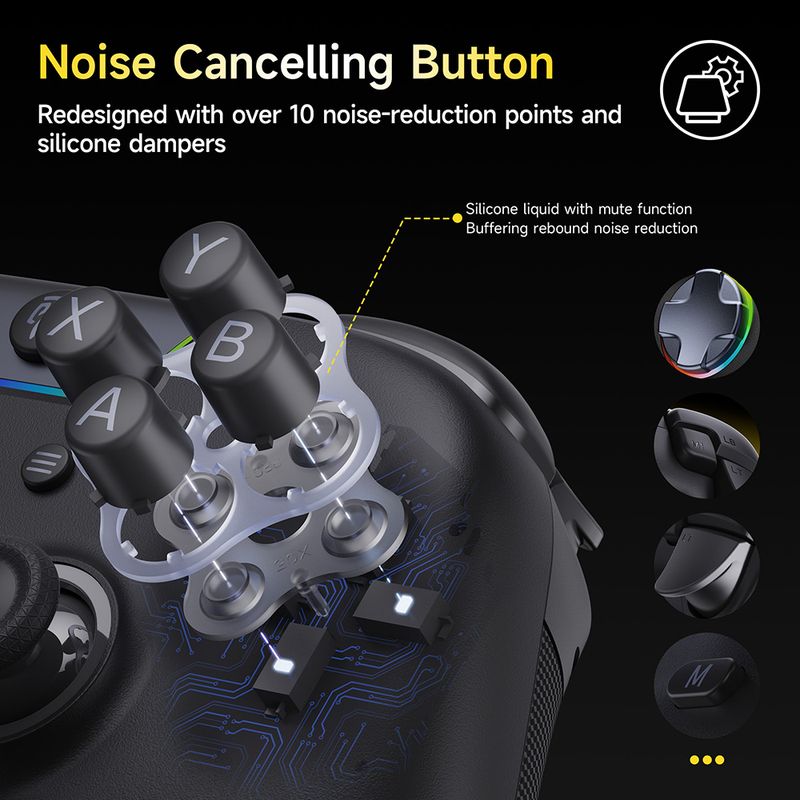Every button is re-engineered with multi-point silicone dampeners—ABXY, D-pad, bumpers, triggers and function keys—delivering near-silent actuation and rebound, so late-night gaming never disturbs roommates or family.