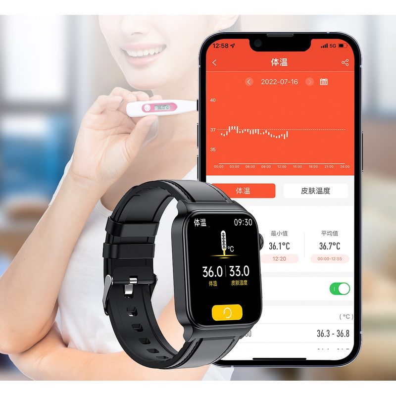 Functions: waterproof, photo taking, step counting, heart rate monitoring, blood pressure measurement, social entertainment, intelligent reminder, sleep monitoring, blood oxygen detection