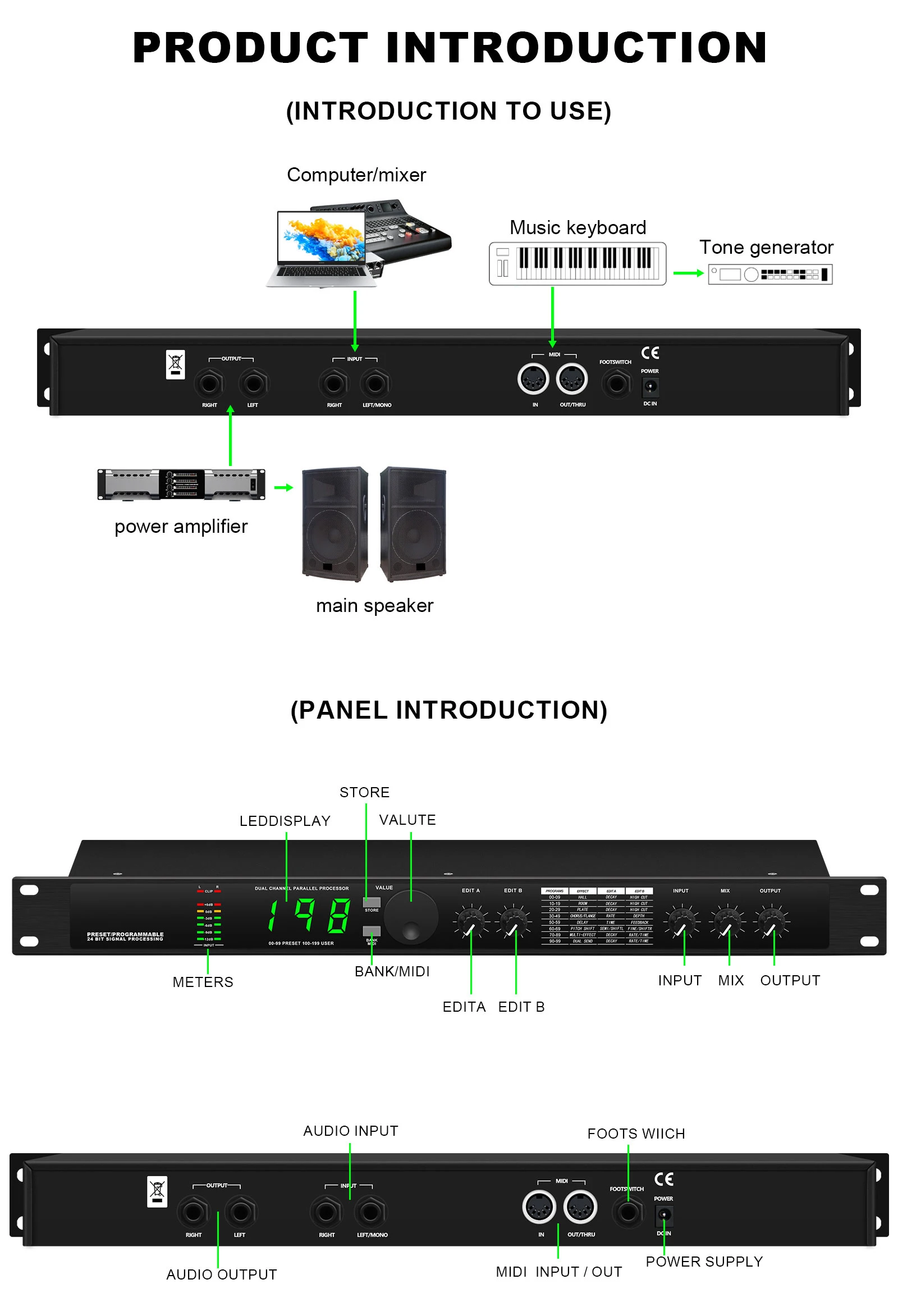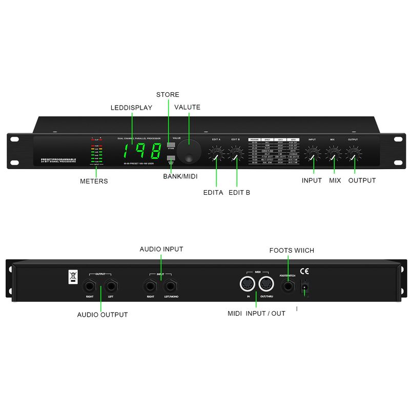 Echo hybrid digital audio processor multi effects digital reverb 199 preset sound effects lifting sound processing