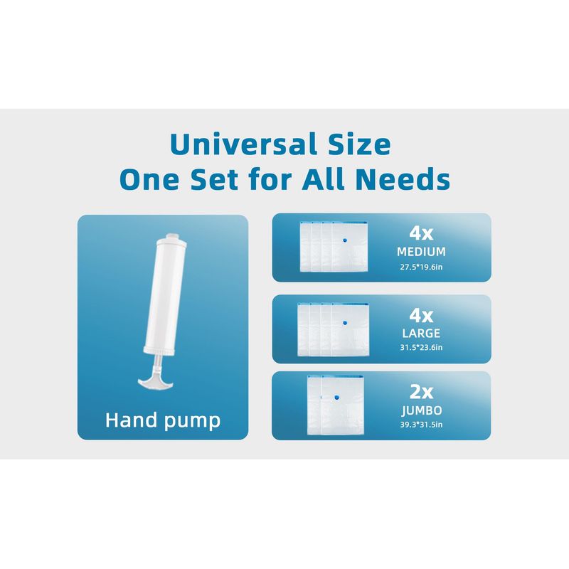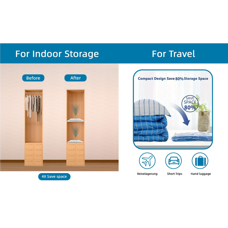 Introducing our Ultimate Storage Solution: Transparent Vacuum Bags! Say goodbye to clutter and hello to organized chaos with these innovative storage bags. These transparent vacuum bags are designed to help you maximize your storage space by compressing bulky items, such as clothing, bedding, and seasonal items. With a simple vacuum cleaner, you can easily remove the air from the bags, reducing their size by up to 80%. The transparent design of these bags allows you to easily see what's inside, making it easier to locate specific items without having to rummage through multiple bags. Plus, the durable material ensures that your items are protected from dust, moisture, and pests. Whether you're looking to create more space in your closets, under your bed, or in your luggage, these bags are the perfect solution. They are reusable, making them an eco-friendly storage option that will save you time and money in the long run. Don't let clutter take over your home any longer. Invest in our Transparent Vacuum Bags today and experience the ultimate storage solution for yourself. Get organized, stay organized, and make the most of your space with our innovative storage solution.