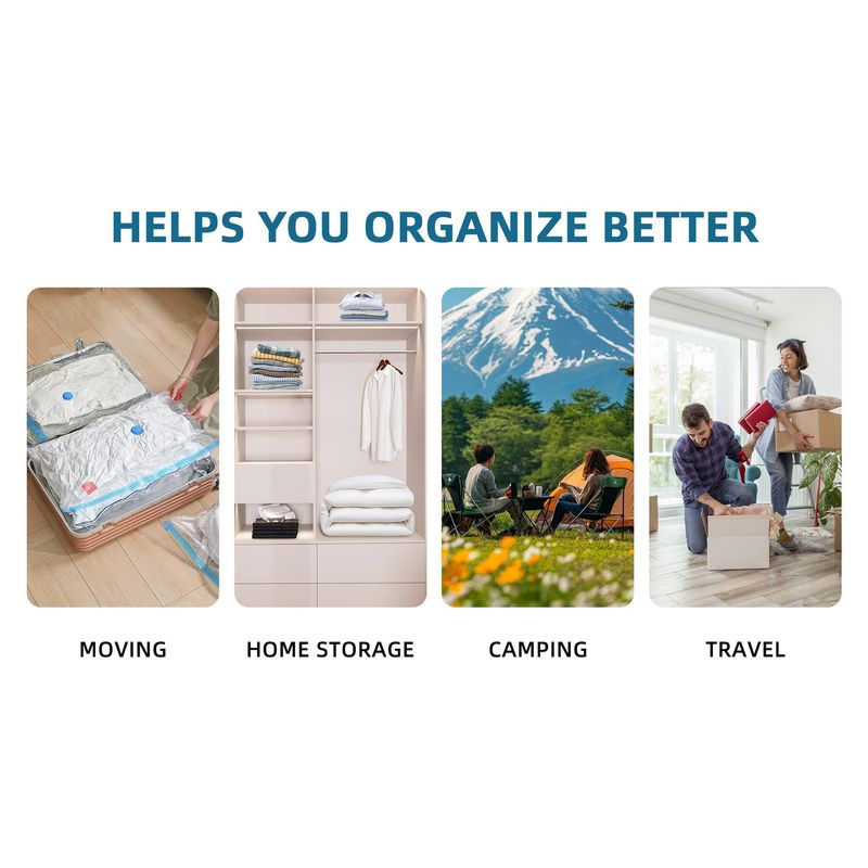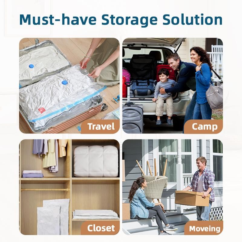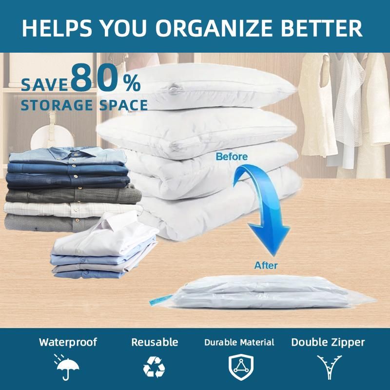 Introducing our Ultimate Storage Solution: Transparent Vacuum Bags! Say goodbye to clutter and hello to organized chaos with these innovative storage bags. These transparent vacuum bags are designed to help you maximize your storage space by compressing bulky items, such as clothing, bedding, and seasonal items. With a simple vacuum cleaner, you can easily remove the air from the bags, reducing their size by up to 80%. The transparent design of these bags allows you to easily see what's inside, making it easier to locate specific items without having to rummage through multiple bags. Plus, the durable material ensures that your items are protected from dust, moisture, and pests. Whether you're looking to create more space in your closets, under your bed, or in your luggage, these bags are the perfect solution. They are reusable, making them an eco-friendly storage option that will save you time and money in the long run. Don't let clutter take over your home any longer. Invest in our Transparent Vacuum Bags today and experience the ultimate storage solution for yourself. Get organized, stay organized, and make the most of your space with our innovative storage solution.