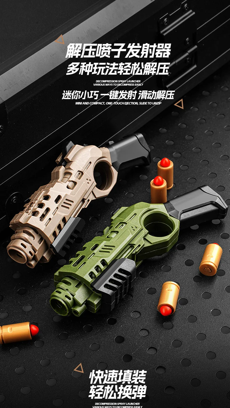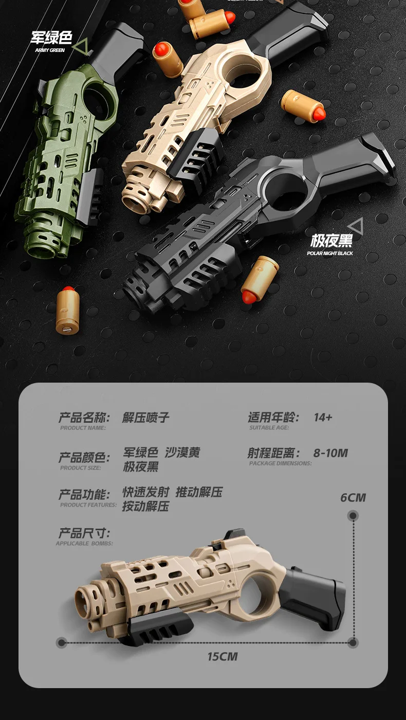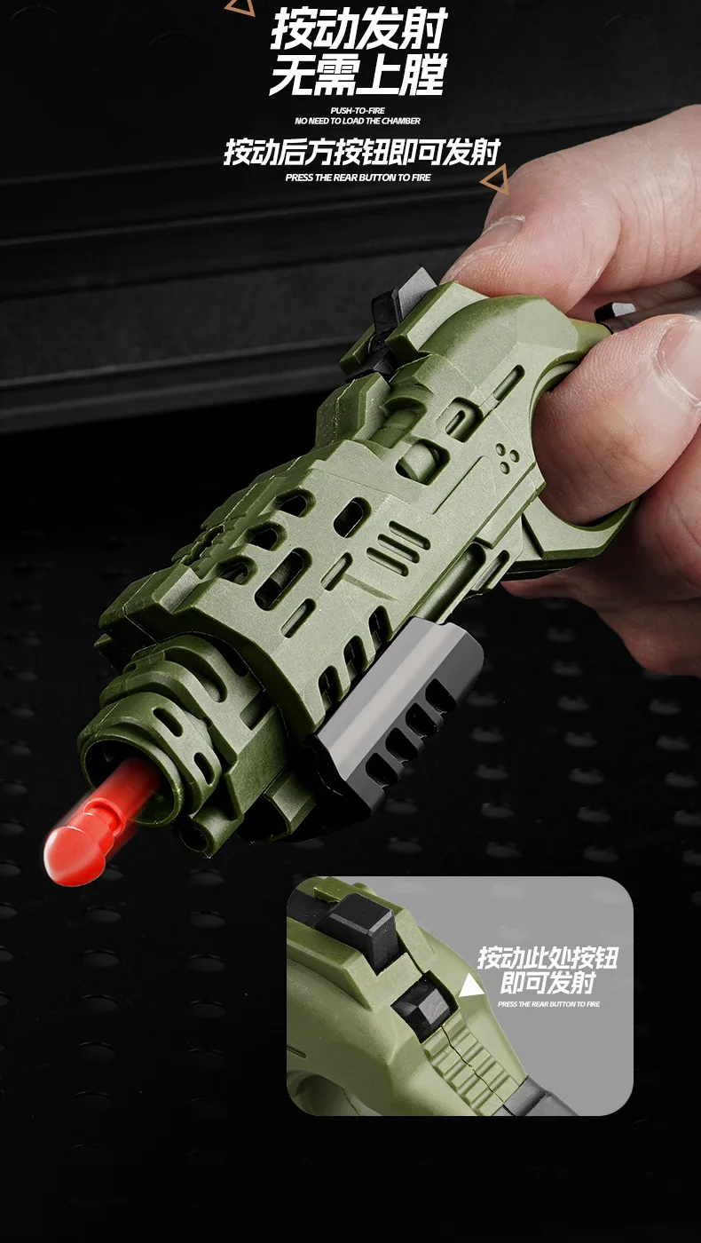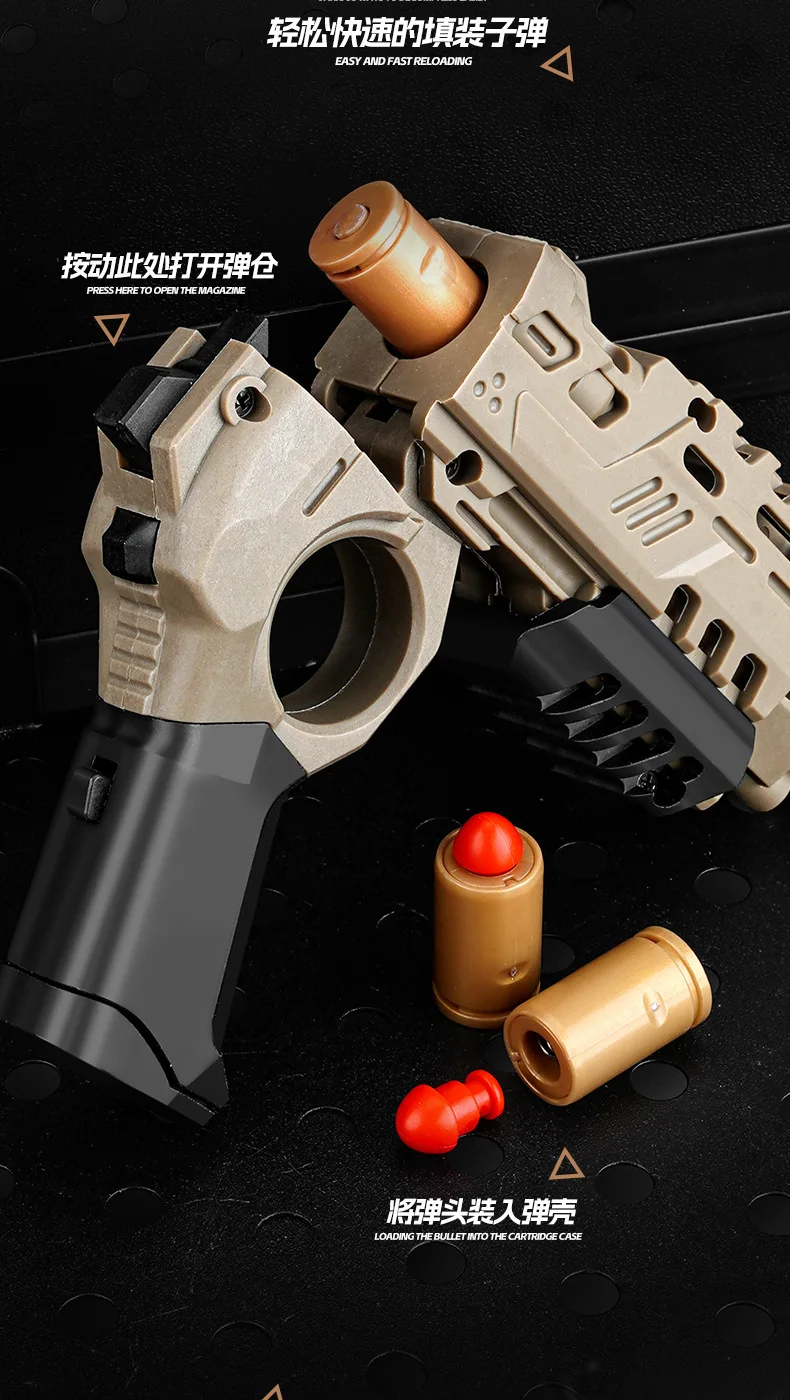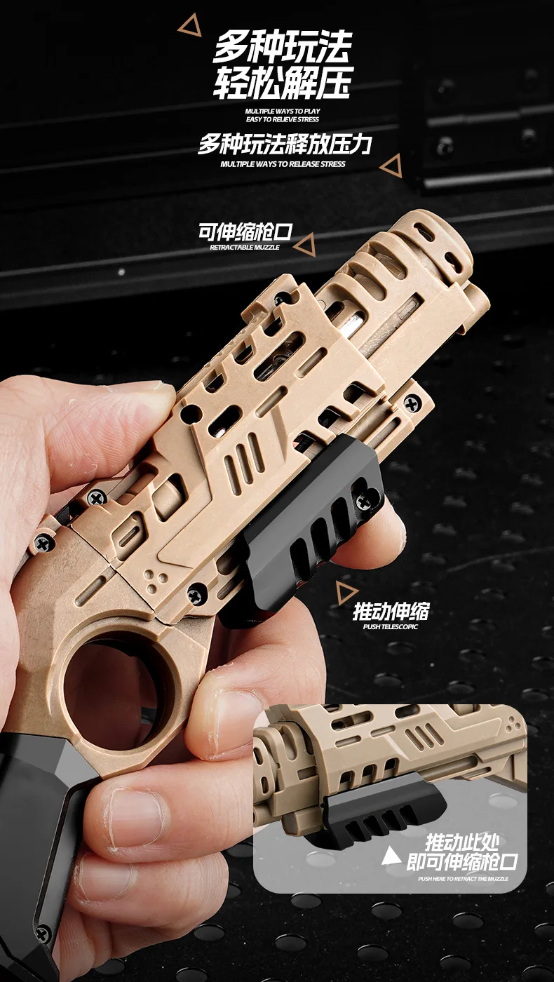 EDC Shootable Toy Pistol with 1-Button Shell Ejection and Card Pushing Function, Black Technology Mini Handgun for Stress Relief