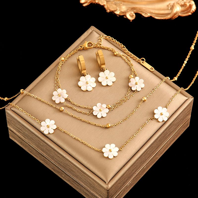 EILIECK 316L Stainless Steel Heart Flower Zircon Necklace Bracelet Earrings Set For Women Trendy Waterproof Jewelry Holiday Gift