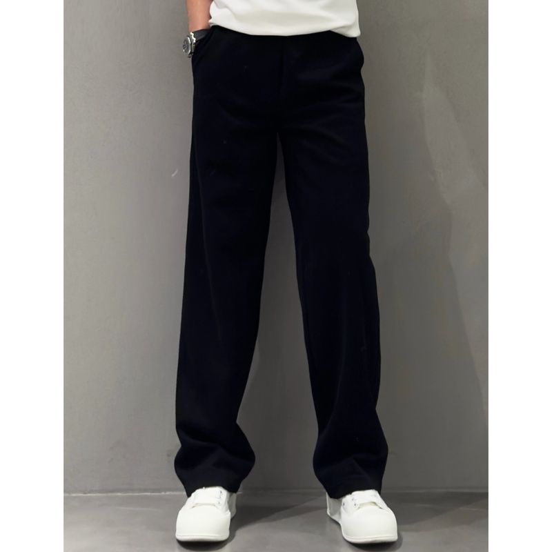 Elastic Casual Drawstring Straight-leg Trousers Black 2XL