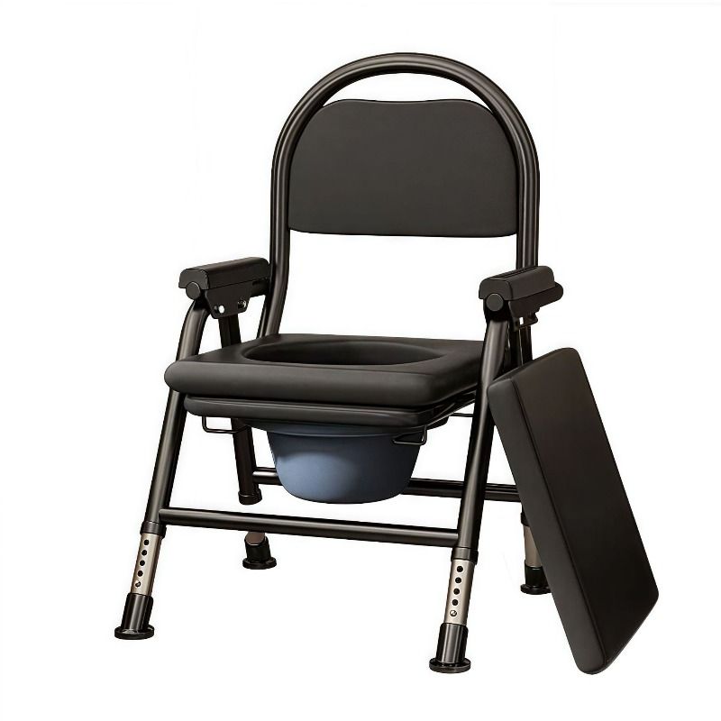 Elderly Folding Commode Chair, Multi-Function Toilet Seat with Bucket & Wheels, Home Care Mobility Aid