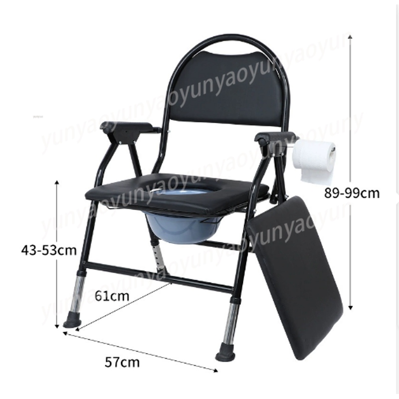 Elderly Folding Commode Chair, Multi-Function Toilet Seat with Bucket & Wheels, Home Care Mobility Aid