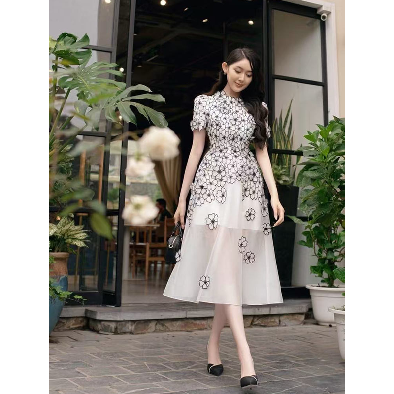 This Vietnamese dress features an elegant style, perfect for weddings, adult ceremonies, parties, and banquets.
