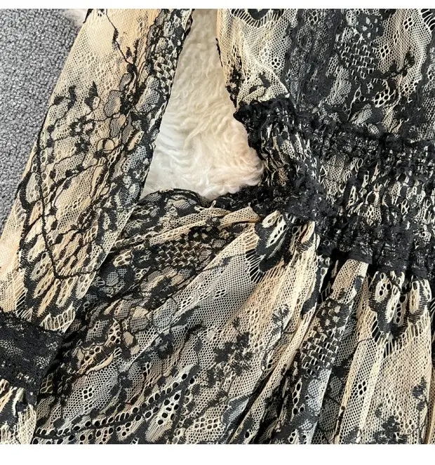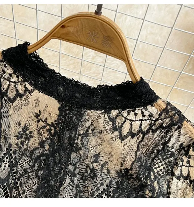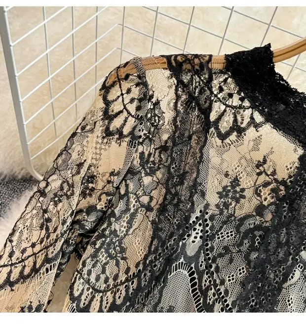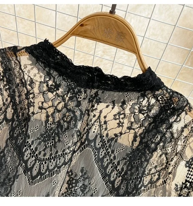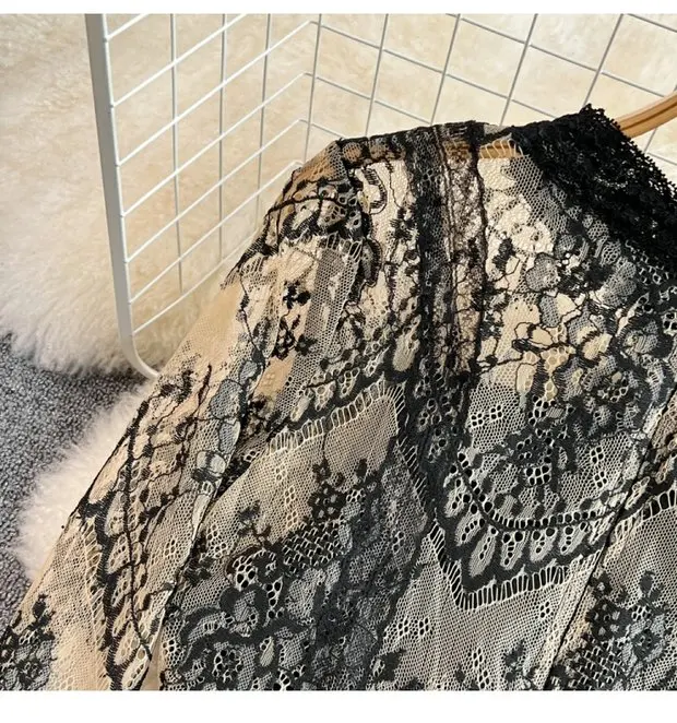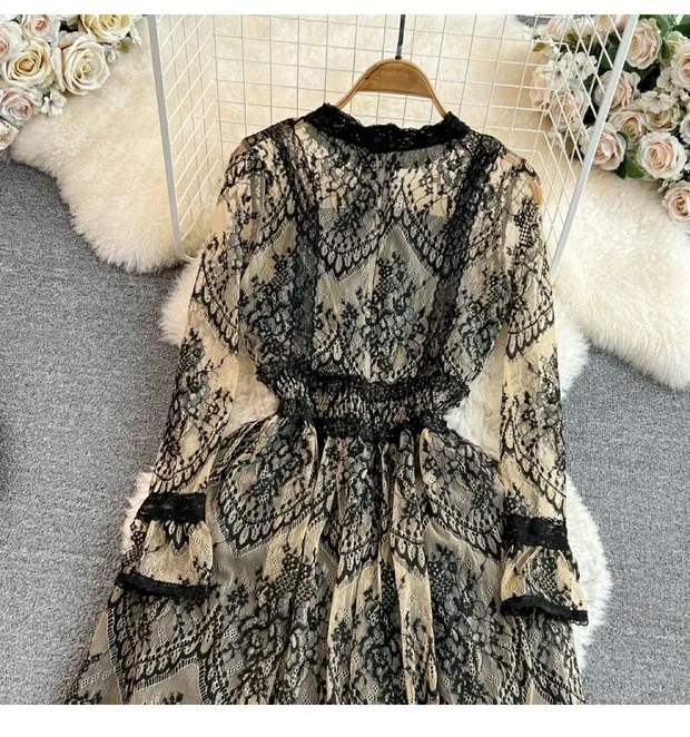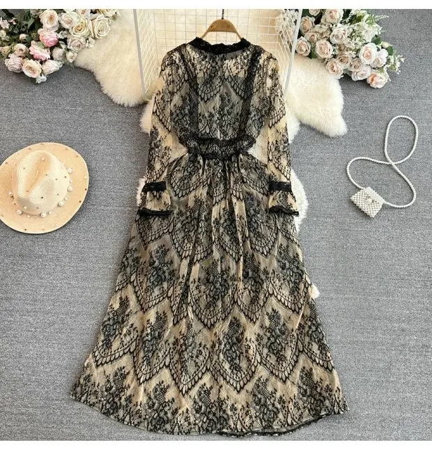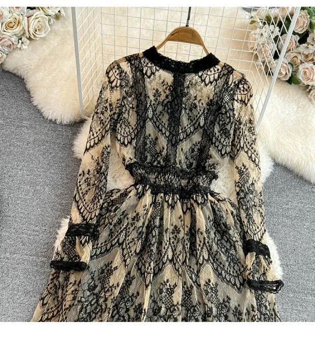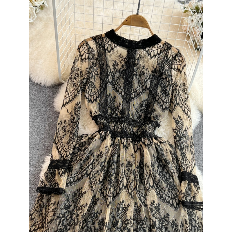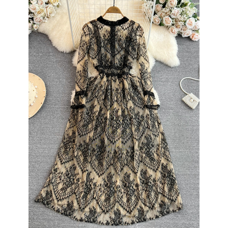 This long-sleeve lace dress exudes an elegant Korean style, perfect for city commutes and social gatherings.