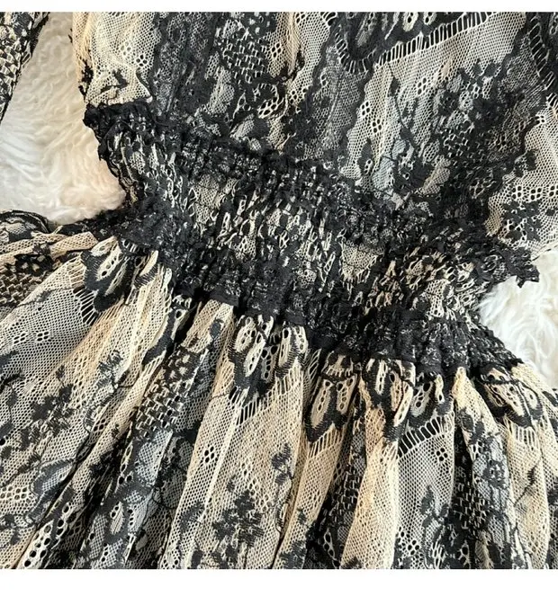 Crafted from exquisite lace material, this dress offers a delicate and feminine touch, making it a standout piece in any collection.