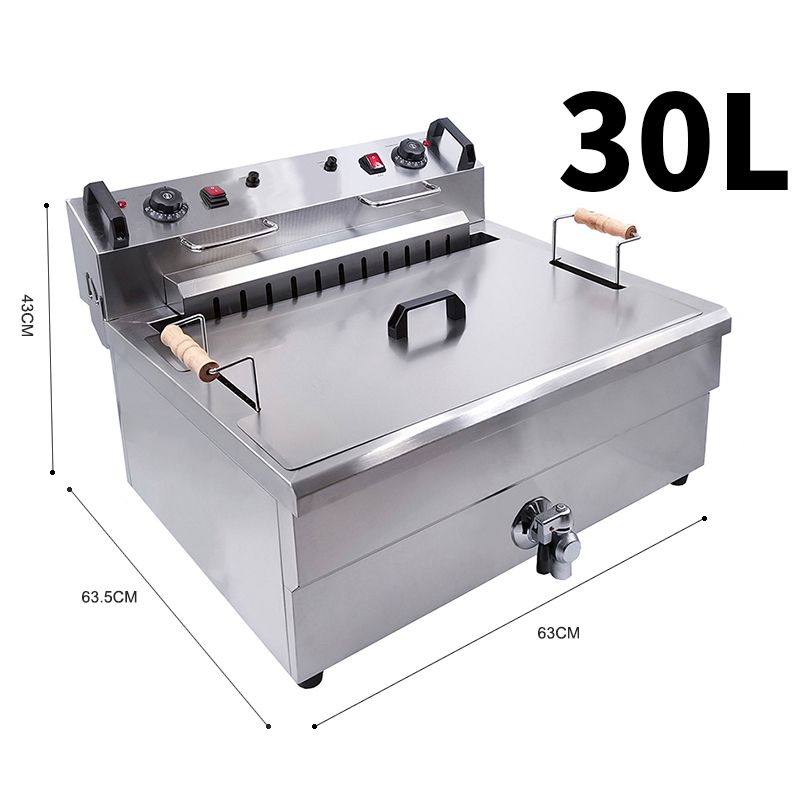 Electric 220V Deep Fryer Machine For Chips Chicken Large Capacity 20L 30L Frying Machine with Oil Drain Faucet 6000W