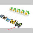 [Color]: white flower, green leaf + colorful butterfly white flower, green leaf + colorful bird