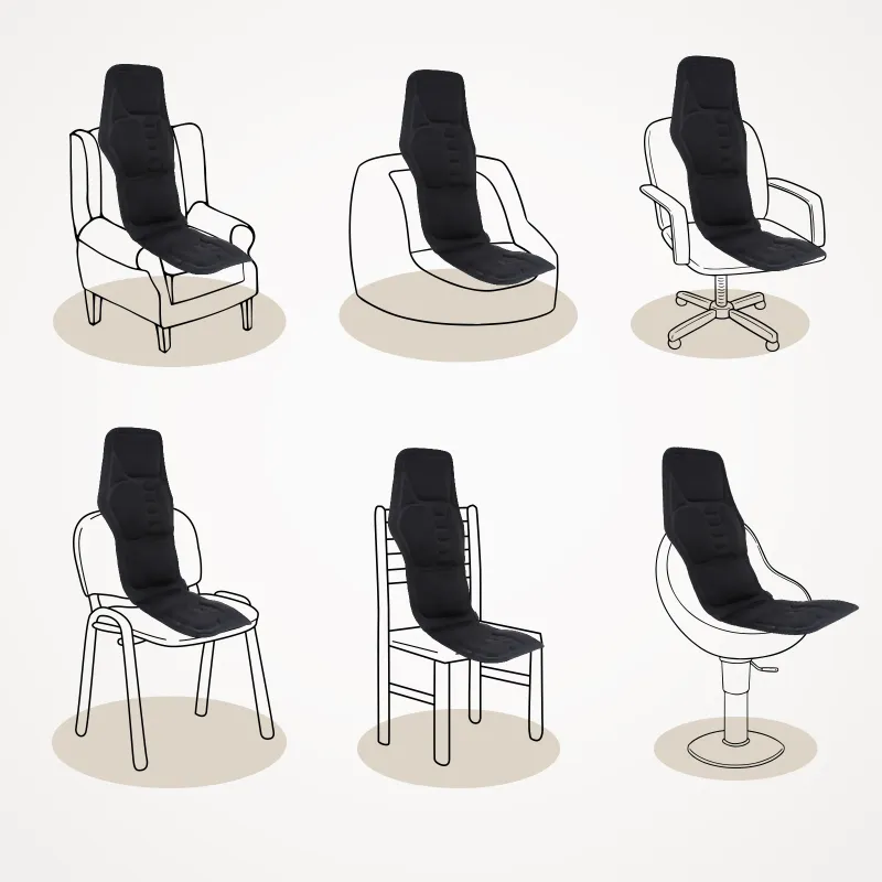 1.Built-in 7pcs powerful and high performance motors will deliver stimulating and soothing vibration massage which can effectively relieve the muscle discomfort on your neck, back, waist, hip and so on.