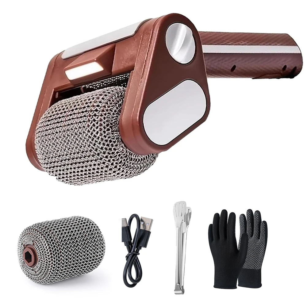 ![]() Electric Grill Cleaner Bristle-Free with Built-in LED Lights Grill Cleaner Brush Without Bristles Cordless Rechargeable BBQ Brush Cleaner for Outdoor BBQ Bathroom and Kitchen Features: 1.Bristle-Free Safety Design: Enjoy a worry-free grilling experience with our brushless electric grill cleaner. Eliminate the risk of metal bristles contaminating your food, ensuring a safer and cleaner grilling process. 2.Premium 304 Stainless Steel Structure: The roller of electric grill cleaner bristle-free is constructed from high-quality, long-lasting stainless steel. It effectively removes the toughest grease and residue from your grill, leaving it spotless and like new. 3.Convenient Usability: This grill cleaner brush without bristles offers excellent mobility, allowing you to clean your grill anywhere, anytime, providing a free and flexible cleaning experience. 4.Powerful Rotational Performance: The bristle-free rotating grill brush quickly and effectively removes burnt food residues and debris. Save your time and energy, ensuring more efficient BBQ preparations. 5.Bright LED Light for Quick, Precise Cleaning: Thanks to the bright LED light, clean precisely even in dark or nighttime conditions. The cordless rechargeable BBQ brush cleaner can clean your grill in seconds, enjoy delicious dishes every time without manual scrubbing. Specification: Material: 304 stainless steel + abs + electronic components Color: brown Size: 24.7x12.6x9.9cm Net weight: 681g Power: 19. 24WH Voltage: 7.4V Speed: 350 rpm (up and down 10%) Battery capacity: 2600 mAh Charging time: 3-4 hours Battery life: 3-4 hours Other parameters Replacement brush head: ABS+304 stainless steel, diameter 6cm x length 7.5cm Food clip: 304 stainless steel, length 23cm Gloves: non-slip nylon material, about 21cm long Note: ![]() 1/2 x Replacement cleaning brush head 1 x LED electric cleaning brush 1x Food clip 1 x Glove 1 x LED electric cleaning brush 1 x Replacement cleaning brush head ![]() ![]() ![]() ![]() ![]() ![]() ![]() ![]() ![]() ![]() ![]() ![]() ![]() ![]()