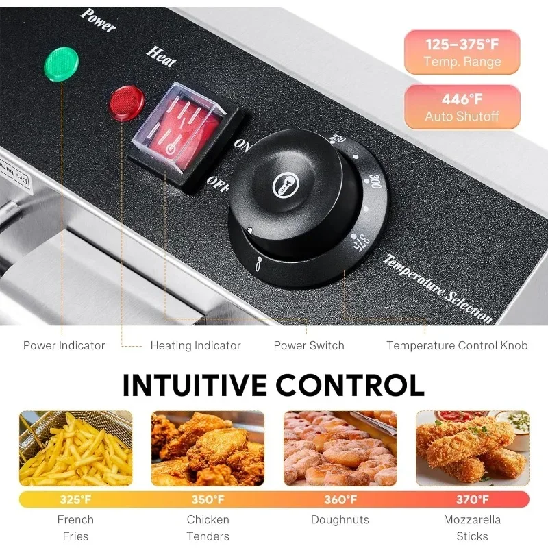 • Enjoy Food-Grade Safety: Certified by ETL and ETL Sanitation, this kitchen deep fryer features a robust 304 stainless steel oil tanks for food-grade safety, along with built-in thermostats that automatically shut off the fryer at 446°F