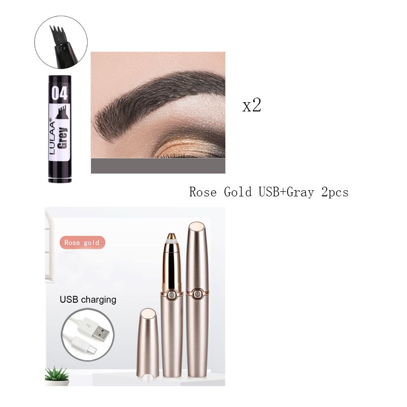 Electric Eyebrow Repairer Not Blooming Liquid Eyeliner Rose Gold USB+2Gray
