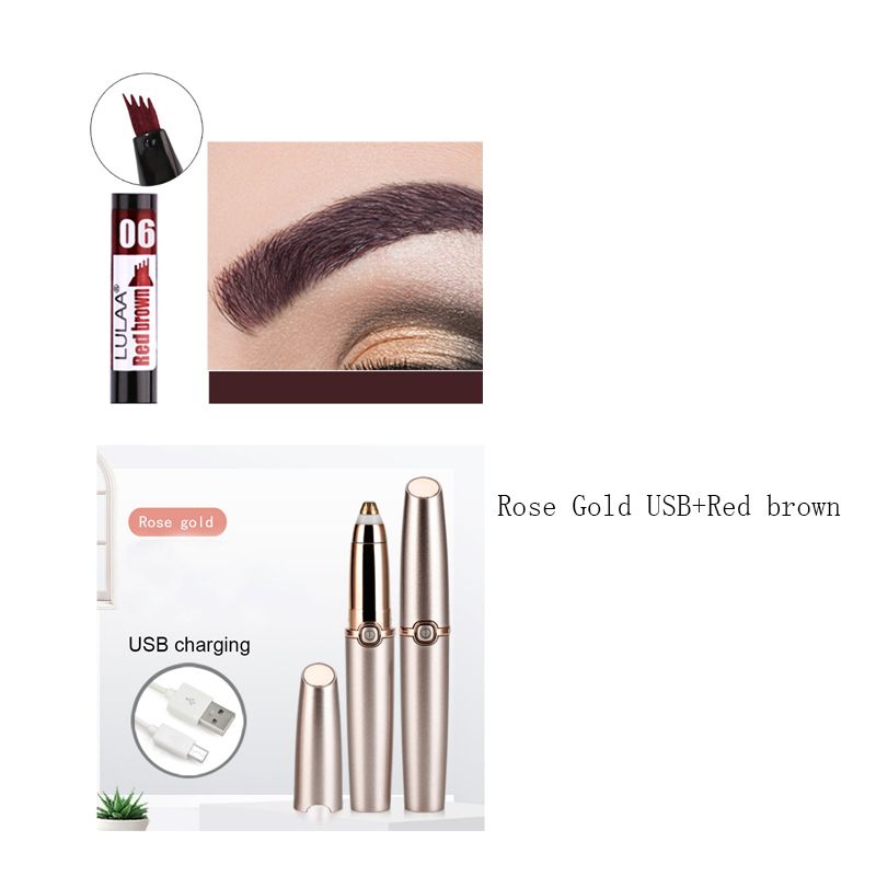 Electric Eyebrow Repairer Not Blooming Liquid Eyeliner Rose Gold USB+Red brown