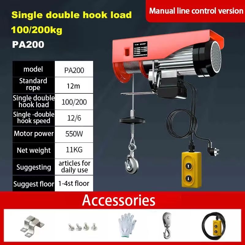Electric Hoist Crane 220V Electric Winch Electric Winch Steel Electric Lift Household Small Lifting Crane 100-400kg