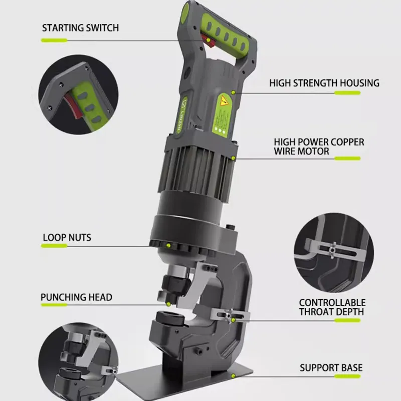High work efficiency: electric drive combined with hydraulic transmission, rapid action, compared with the traditional manual punching tools, greatly improve the punching speed, can complete a large number of punching tasks in a short time.