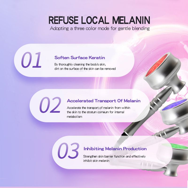 A: Our triple-light technology works through three mechanisms: softening surface keratin to remove impurities, accelerating melanin transport for internal metabolism, and inhibiting future melanin production at the root cause.