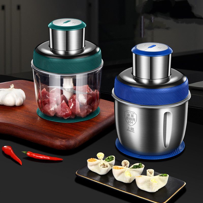 Color: dark blue: electric meat grinder (double cup/four blades/garlic pounding/slip mat), dark green: electric meat grinder (double cup/four blades/garlic pounding/slip mat)