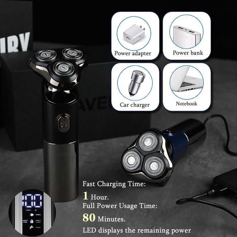 Features: Washable portable skin care dry and wet dual-use variable speed floating knife head LED screen display intelligent control pressure sideburns trimming