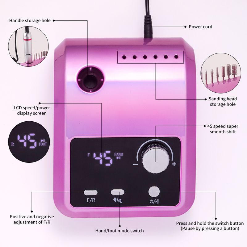Electric Nail Drill Professional - 45000 RPM Nail File Kit Machine With LCD Display, Hand & Foot Control Low Noise For Acrylic, Gel Nails, Manicure & Pedicure - Salon & Home Use