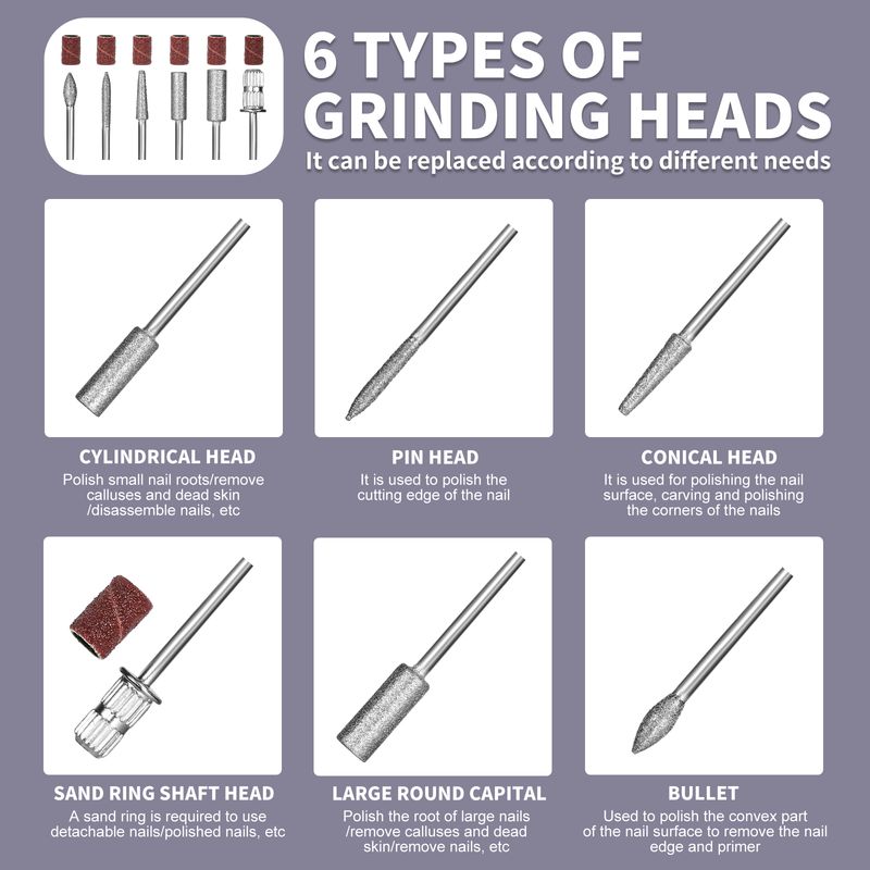 • 【Rechargeable and Wireless】The nail filer electric is equipped rechargeable battery that can maintain continuous cordless operation for more than 6 hours on a full charge. Electric nail filer for adults let you enjoy hand and foot care wherever you want without the hassle of cables.