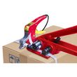 Open on-off, after 30sec till the strapping head getting hot, you can start your work, hold the handle, and put it into the straps
