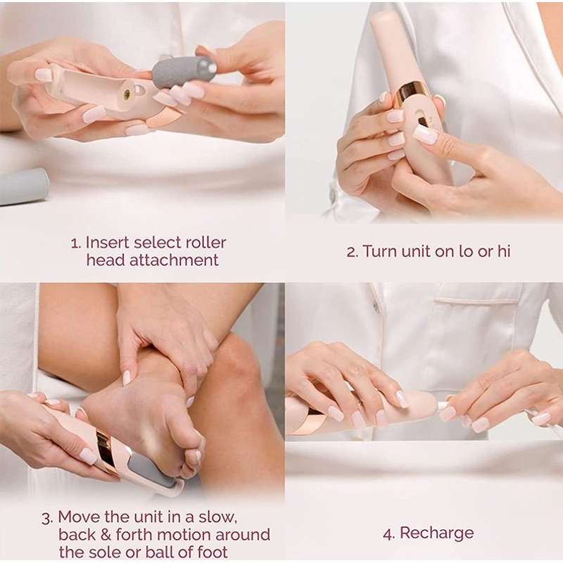 ✔ Customizable foot care – Two-speed settings and dual rollers let you tailor treatments for gentle smoothing or deep exfoliation.