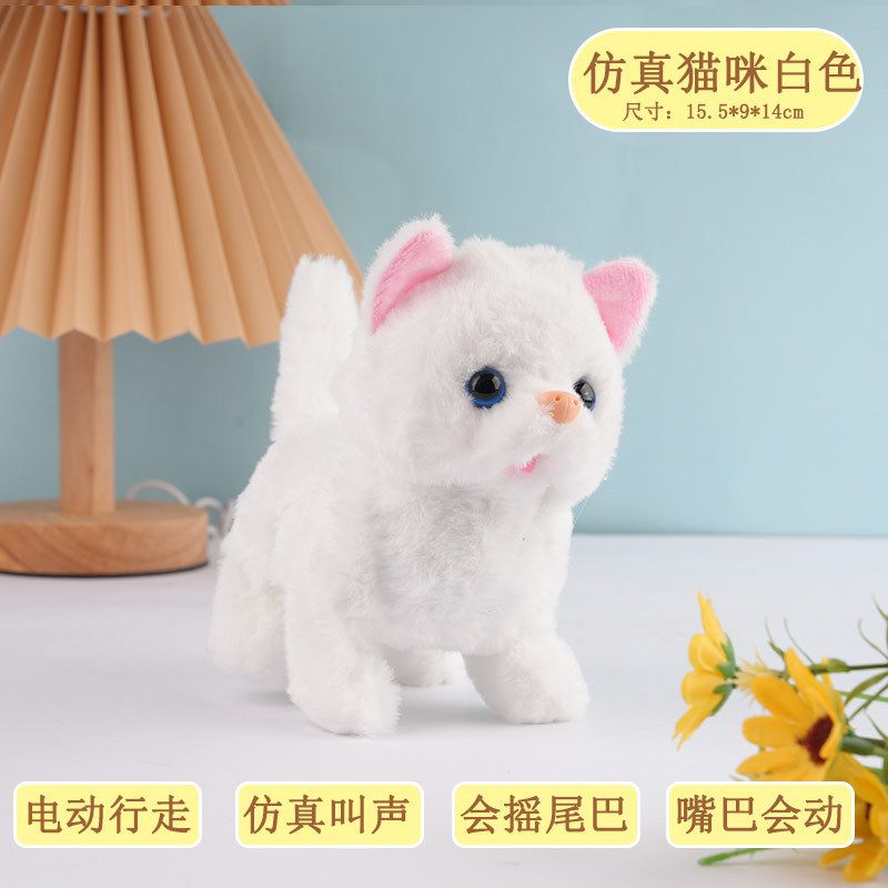 ​​Electric Plush Cat Toy Walking Barking Moving Machine Simulation Plush Pet Toy for Cats Interactive Play and Entertainment​​