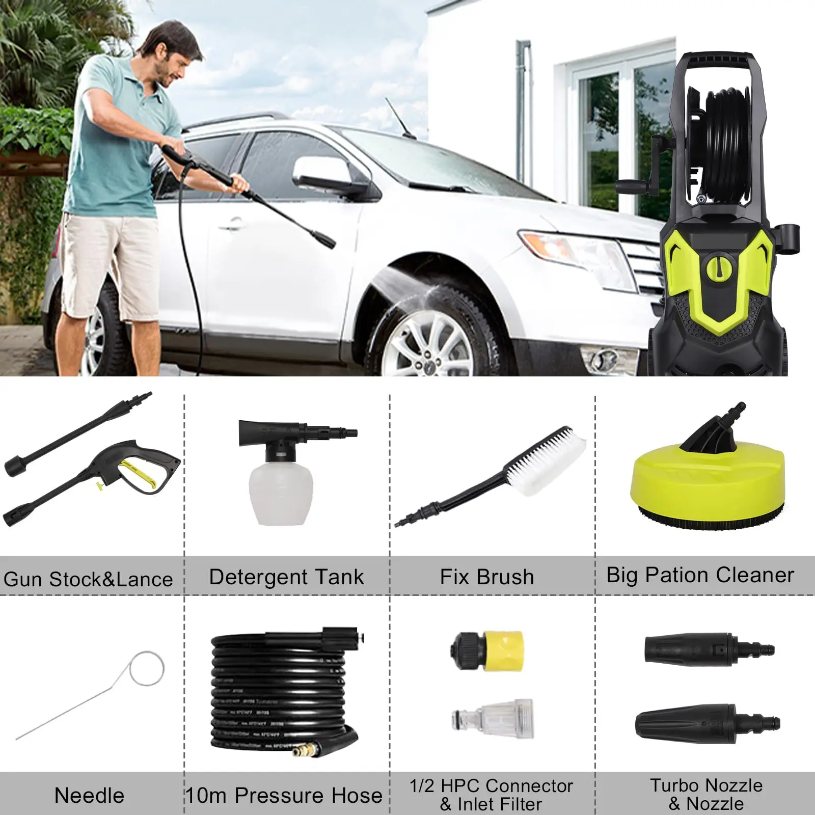 【Fix Brush & Rotary Brush】---An accessory kit including Fix Brush and rotrary brush Patio Cleaner helps you clean large outdoor areas quickly and easily.
