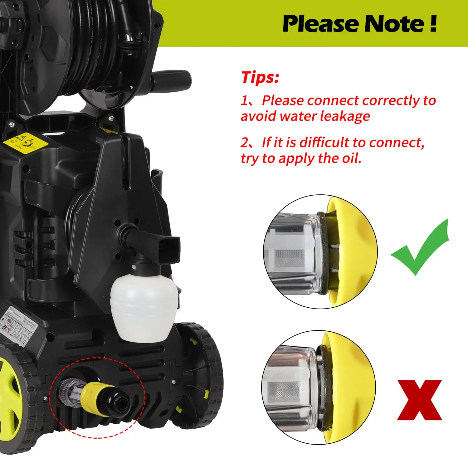 【Quick Connect & Inlet Filter】---Use the quick connector to connect all accessories, easy to assemble. The inlet filter effectively prevents mechanical blockage.