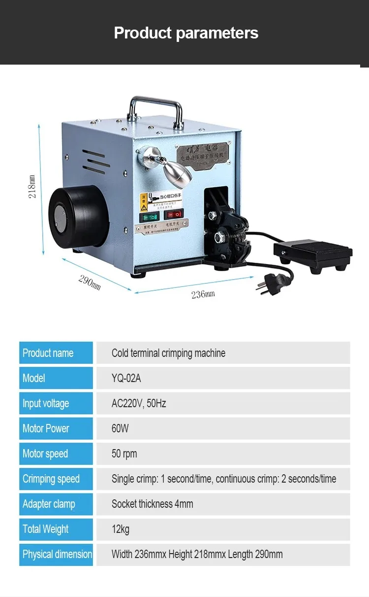 Crimping speed: Single crimping :1 second per time, continuous crimping :2 seconds per time
