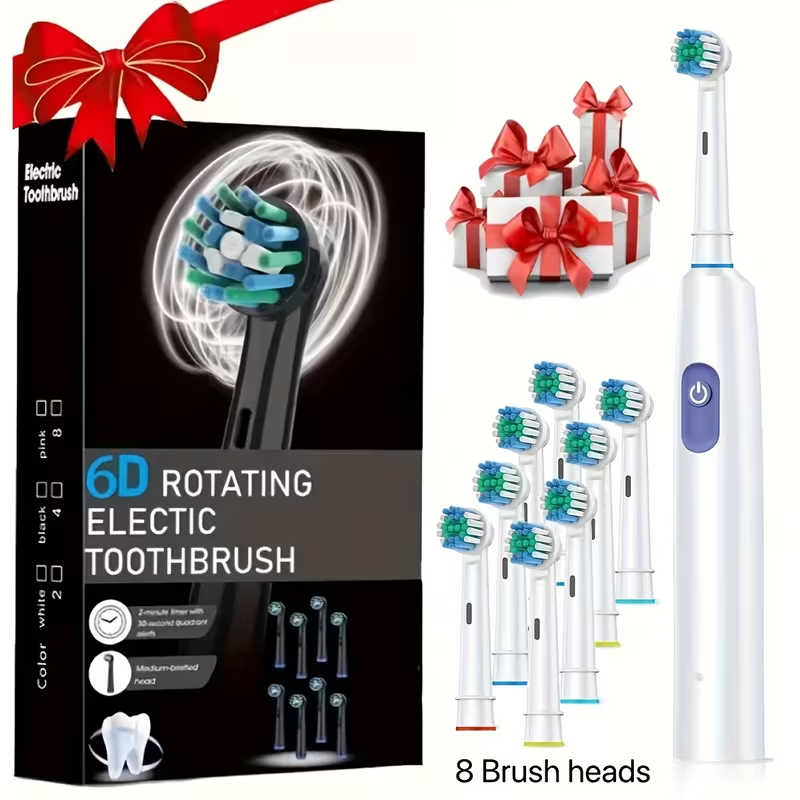 Electric Toothbrush Rotary Rechargeable Electric Toothbrush for Adults Rotating Electric Toothbrushes with 8 Soft Brush Heads