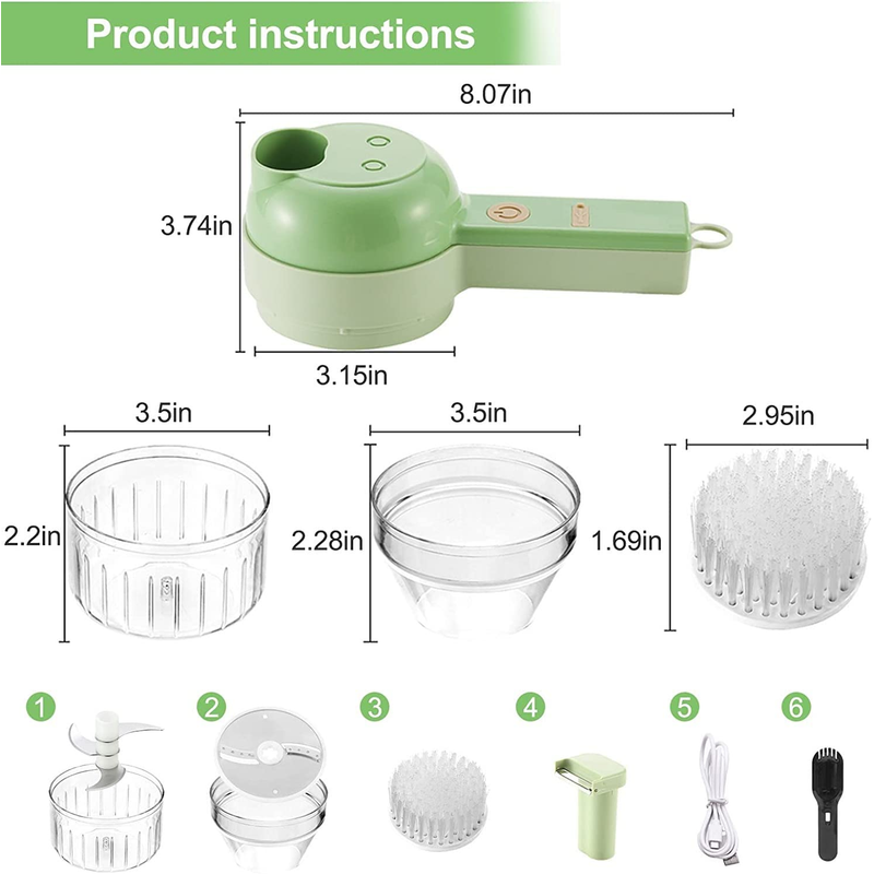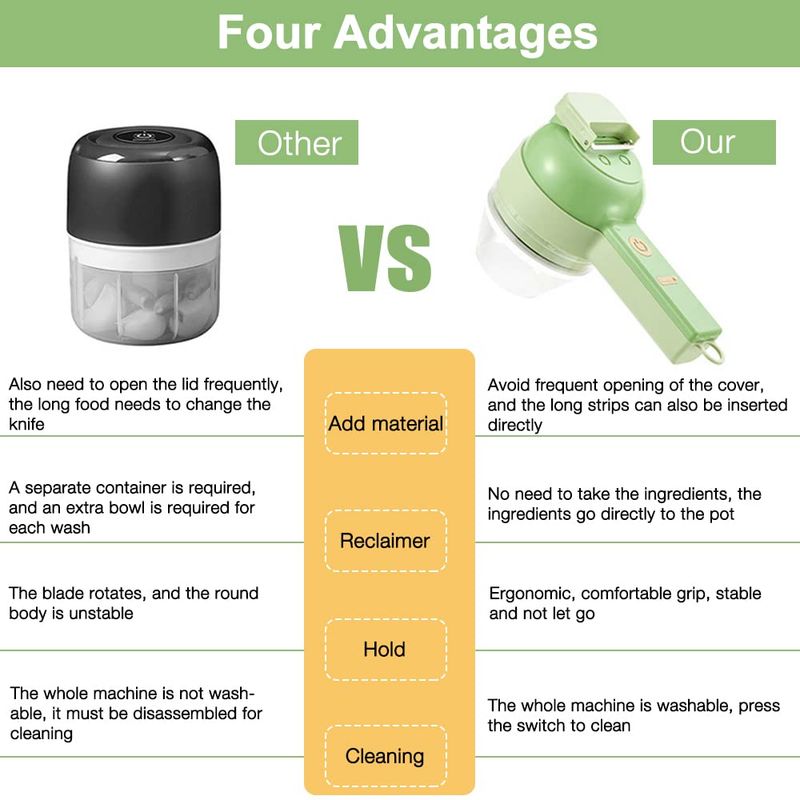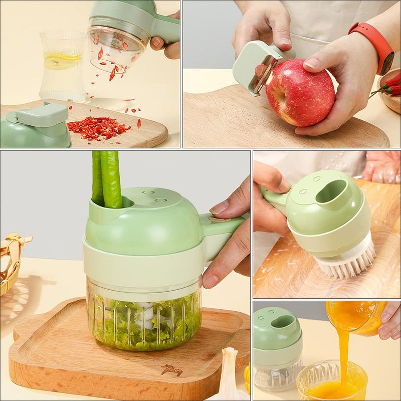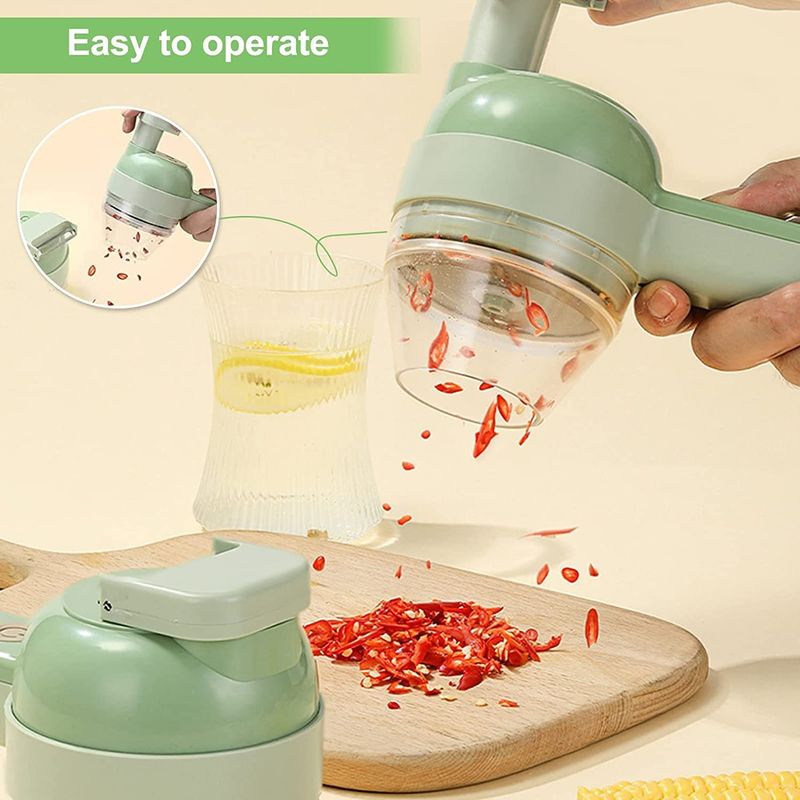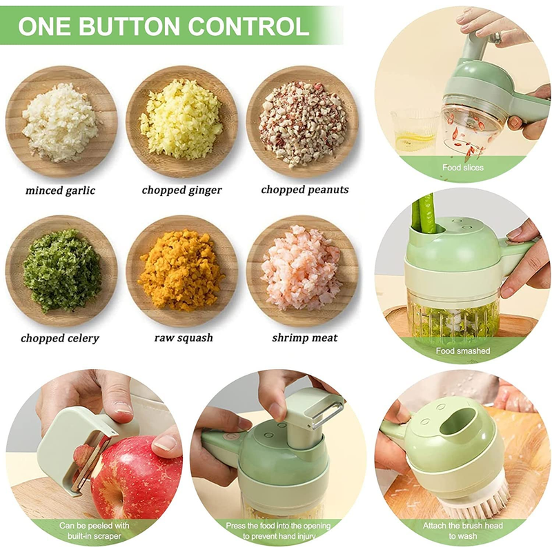 Electric Vegetable Cutter 4in1 Handheld Wireless Electric Garlic Masher Food Peel Slice Kitchen Multifunctional Cooking Gadget