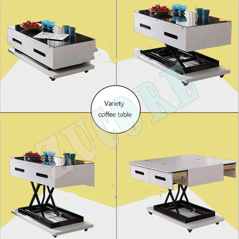 Multifunctional Electric Wired And Wireless Remote Control Coffee Table Dining Table 48v/80w Lifting Hardware Folding Iron Frame