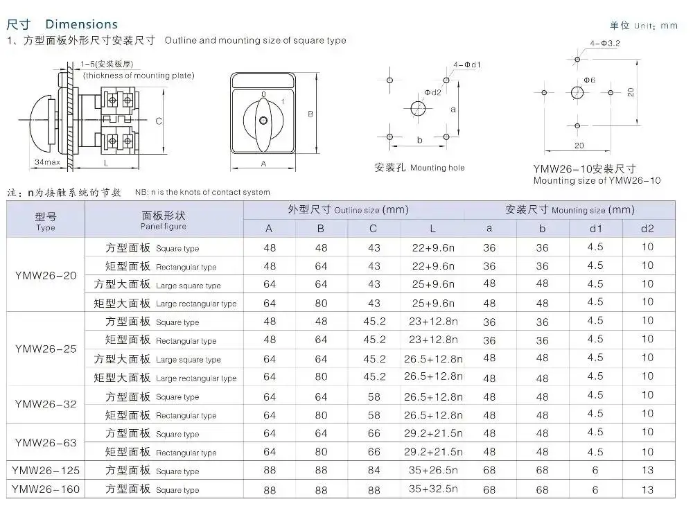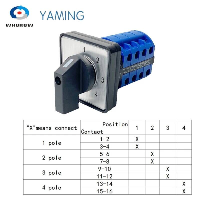 Electrical LW26-20/4 Panel Mount 20A 660V 4 Poles 4 Position Control Motor Circuit Universal Changeover Rotary Cam Switch