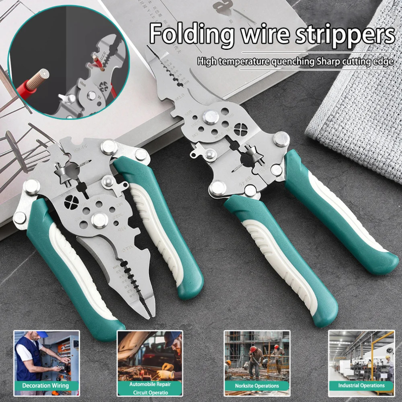 Ideal for stripping wires and cutting cables, this electrical pliers tool suits hydropower installation, car wiring, cable wrapping, and maintenance of electric boxes, DIY enthusiasts a like.折叠剥线钳 多功能剥线钳 电工剥线钳