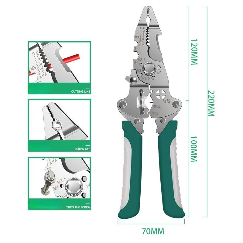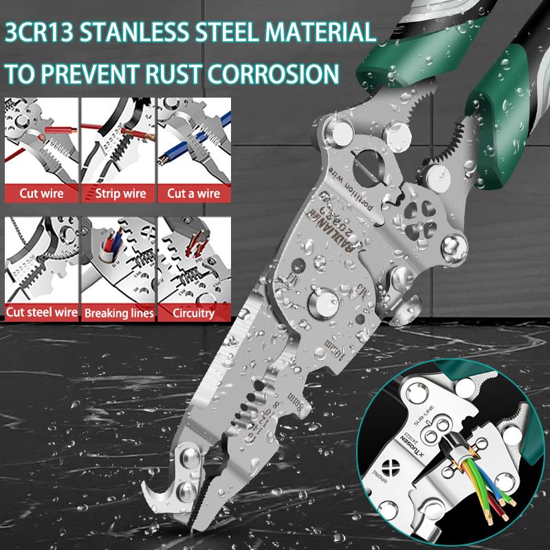 Ideal for stripping wires and cutting cables, this electrical pliers tool suits hydropower installation, car wiring, cable wrapping, and maintenance of electric boxes, DIY enthusiasts a like.Combines wire stripping, cable cutting, slicing, dividing, twisting, and pulling into one tool. eliminate multiple pliers and streamline every electrical job.