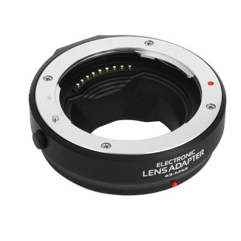 The 43F is equipped with electronic contacts. When a lens compatible with high-speed imaging AF is used, the camera can perform live view shooting with smooth autofocus capability. Functionally equivalent to Olympus adapter MMF-1 / MMF-2 Panasonic DMW-MA1.