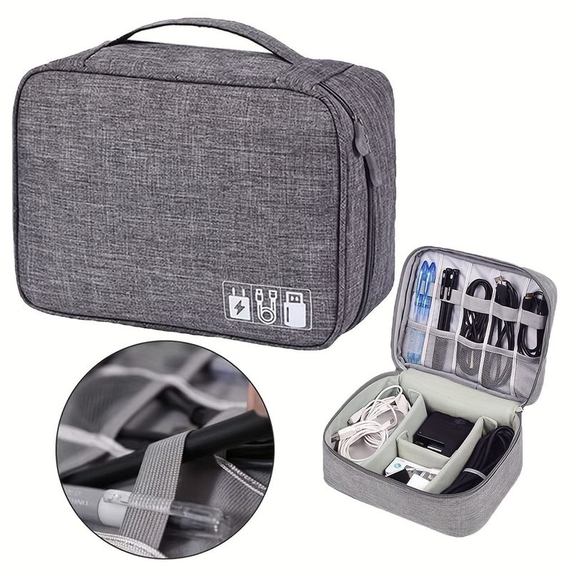 Sturdy & Widened HandleThis travel cable organizer is designed with a widened handle, you can take it with you no matter you are at office, travelling or going on a business trip. | Double-way ZippersDouble-way zippers are more convenient for you to fetch electronic accessories than single zipper. Quality Anti-slip zippers are more smooth and durable than normal zippers. | Waterproof Cation FabricThis accessory case is made of cation fabric, which is waterproof and durable, protecting your electronics against scratches, dust, impacts and accidental dropping. |