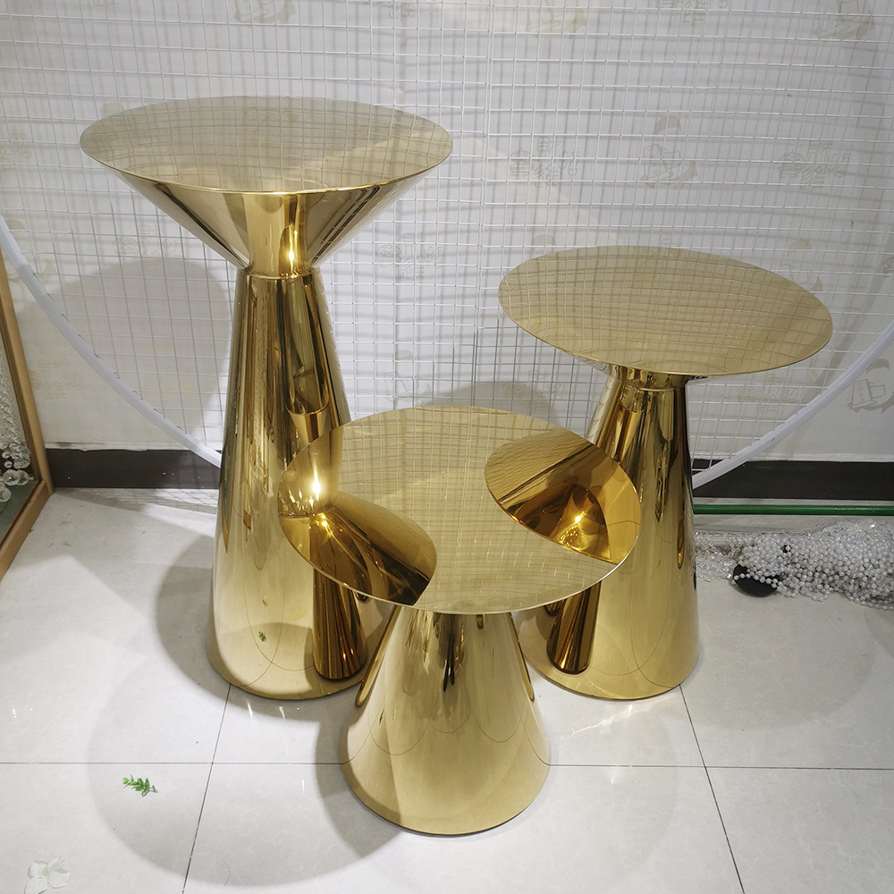 Electroplated Gold Stainless Steel round Table Mushroom Head Dessert Table for Home Decor
