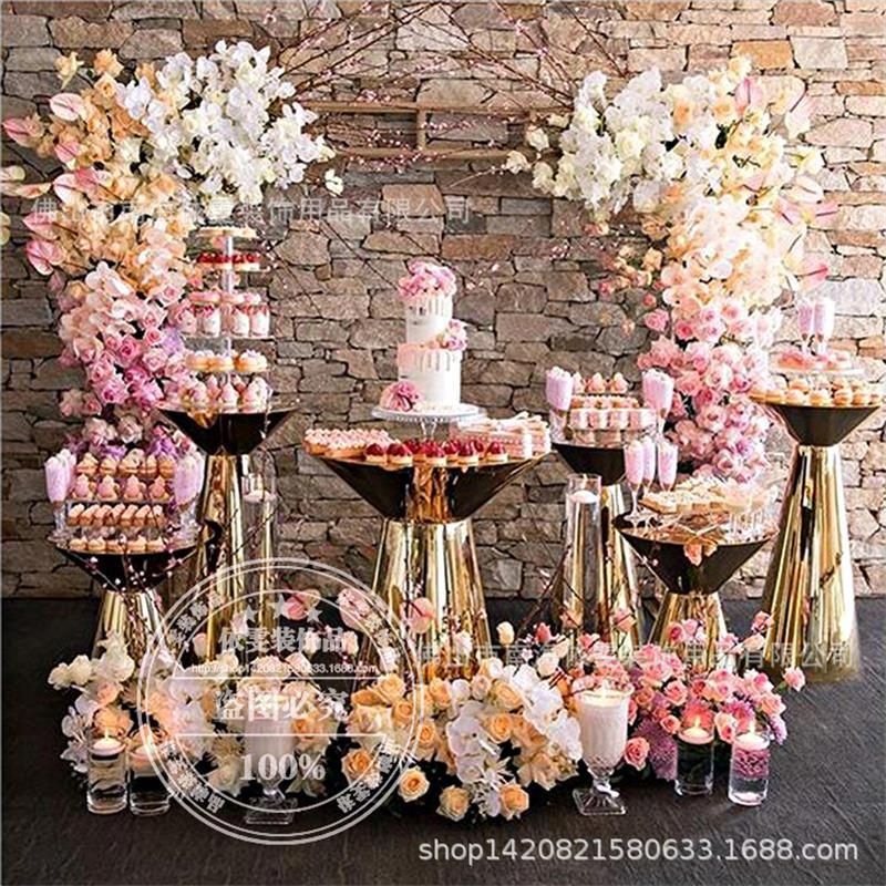 Electroplated Gold Stainless Steel round Table Mushroom Head Dessert Table for Home Decor