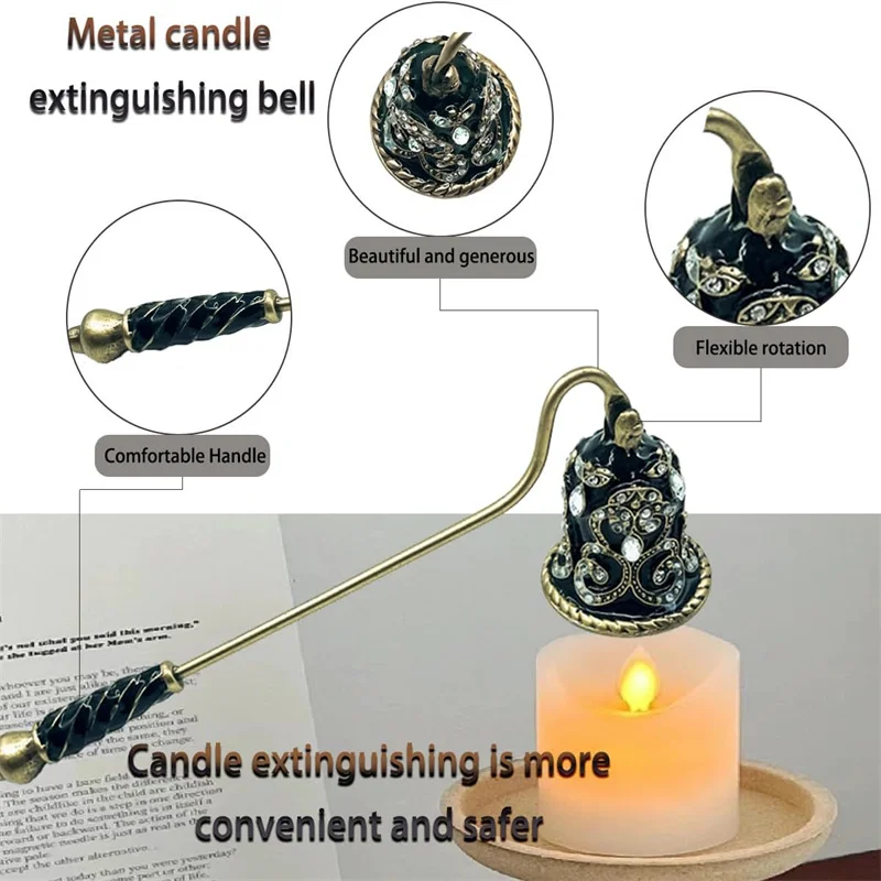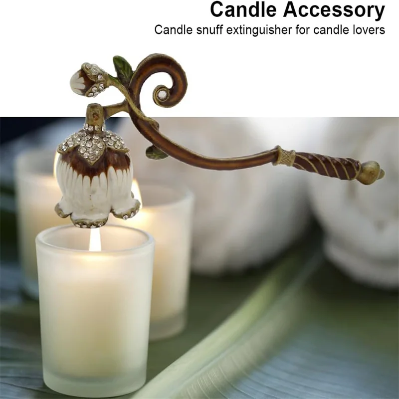 Material: Candle Snuffer made of metal, safely extinguish the candle, durable and for long time use.
