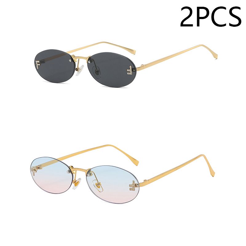 Elegant Diamond Oval Sunglasses Male Letter "F" Rimless Sunglasses Female