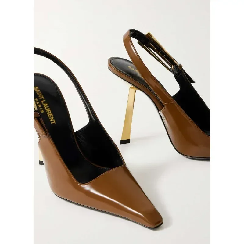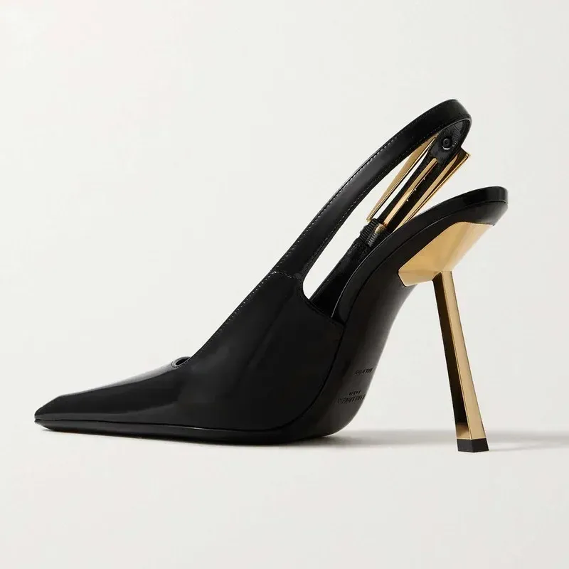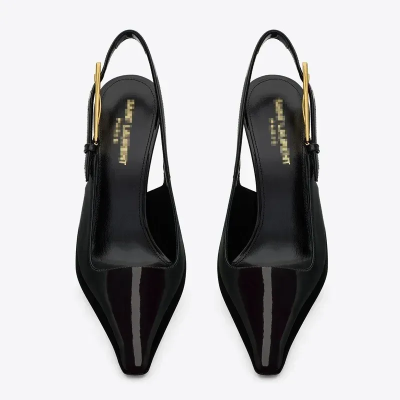 Elegant Fashionable Black Pointed Toe Thin Heel Single Shoes Patent Leather Buckle High Heels Stylish Luxurious