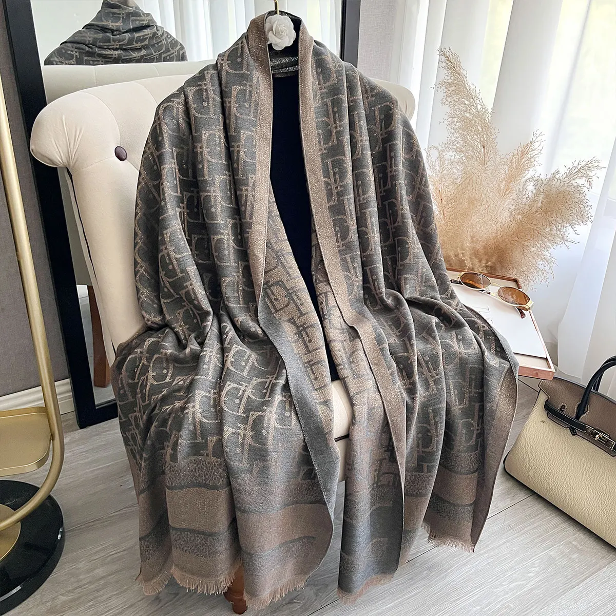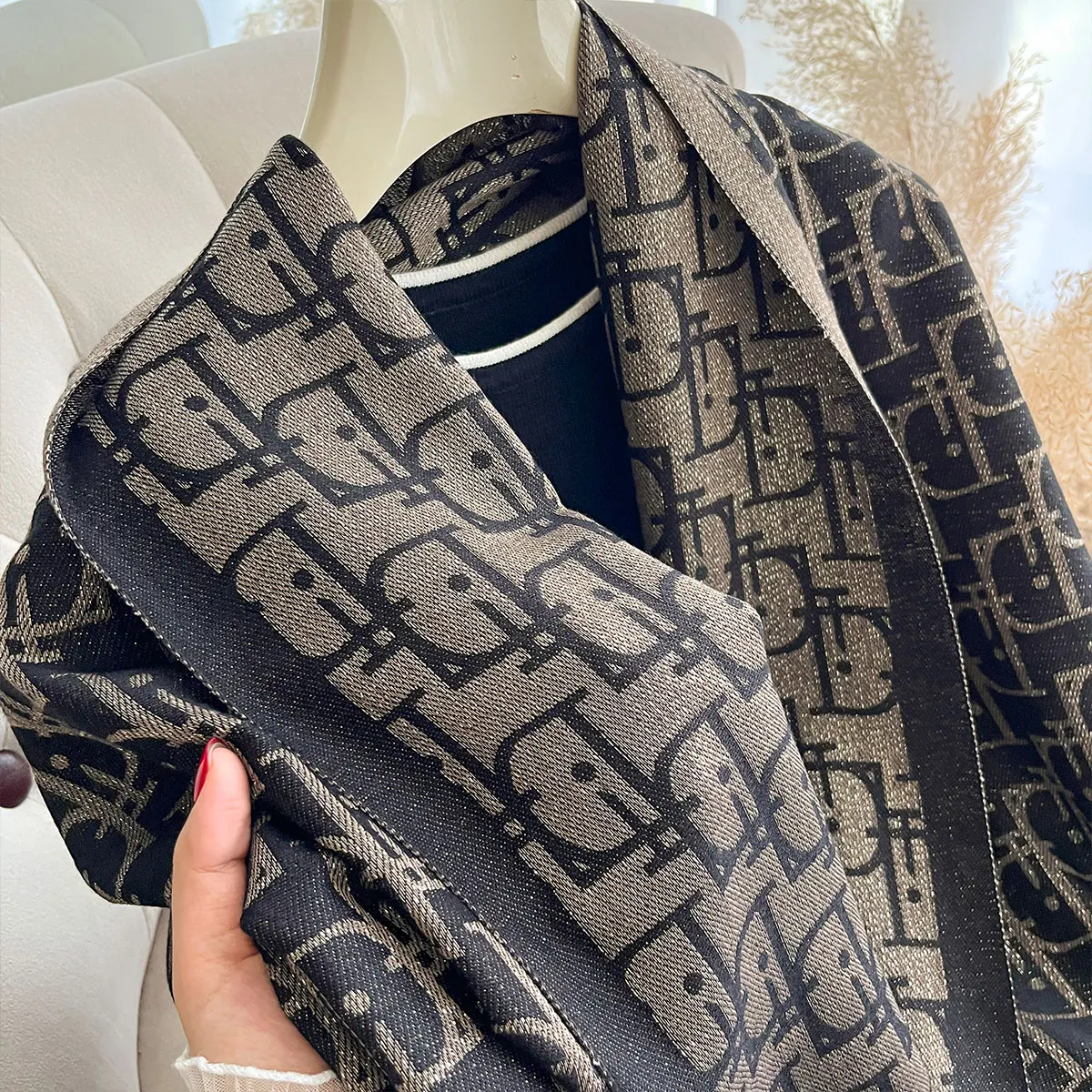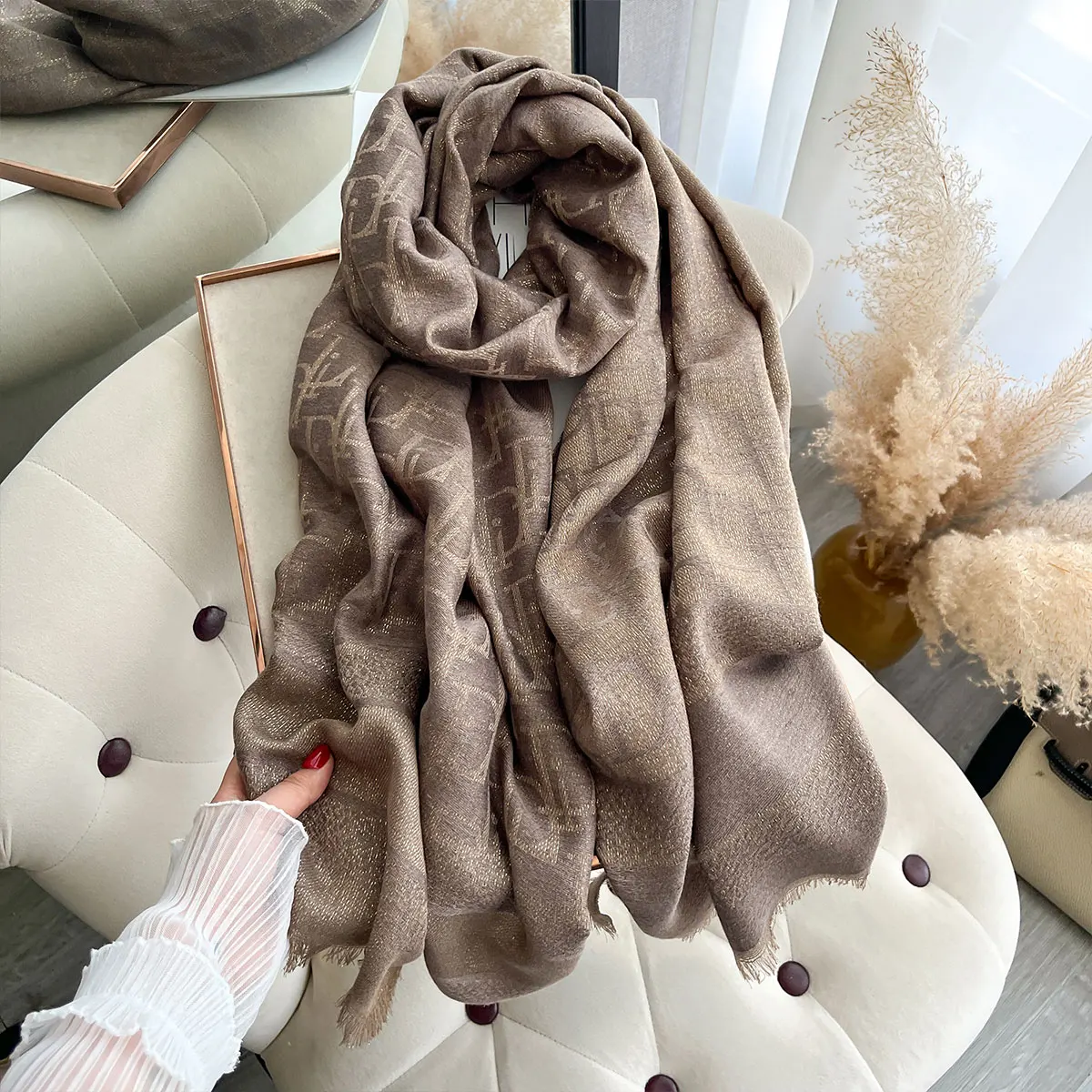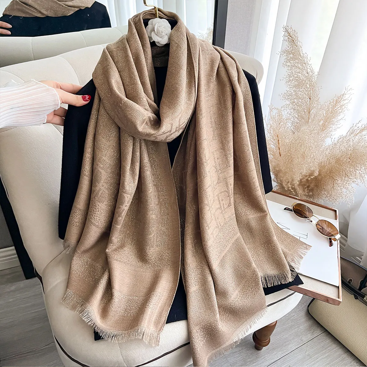 Elegant Golden Thread Muslim Hijab Scarf for Ladies Long Spring Autumn Sun Protection Shawl Wrap Headcover with Decoration