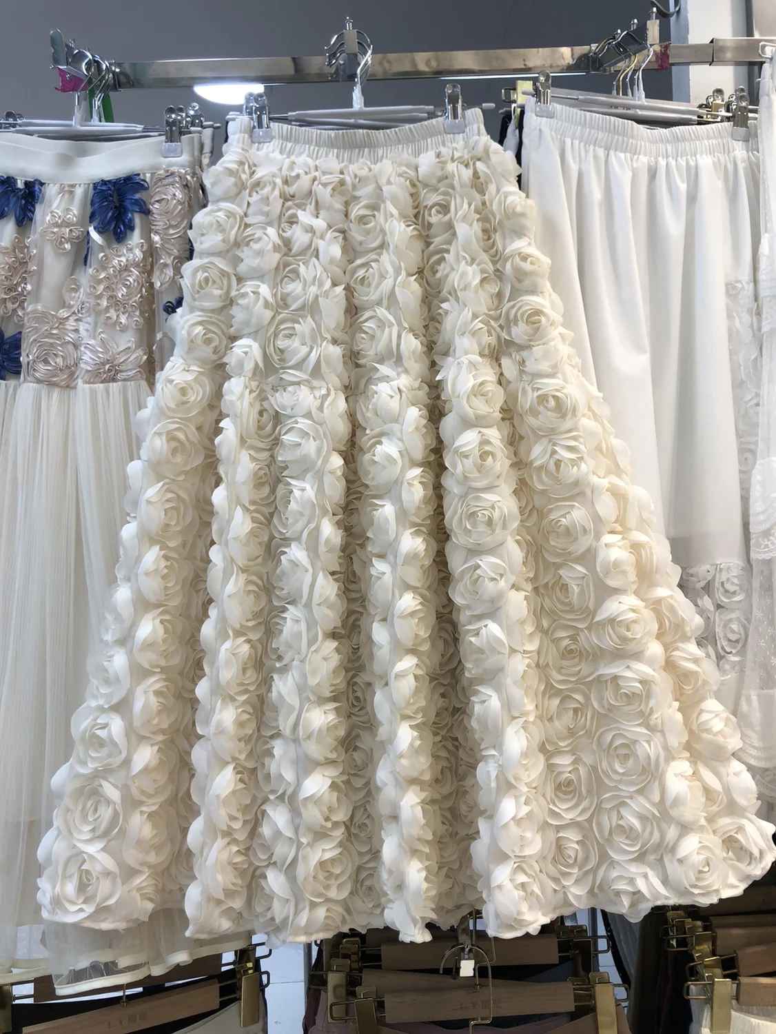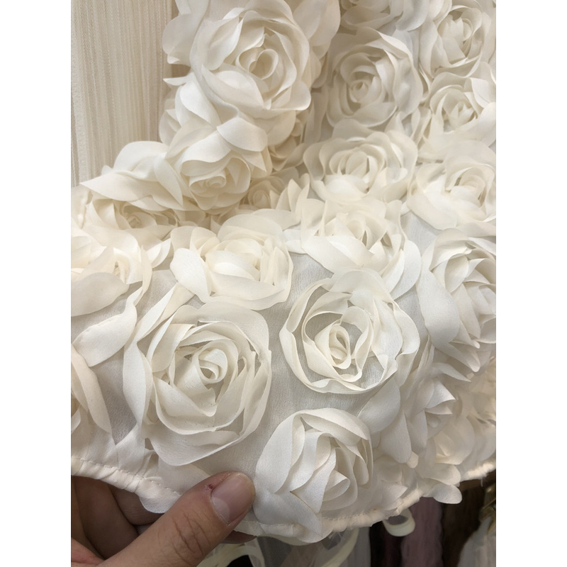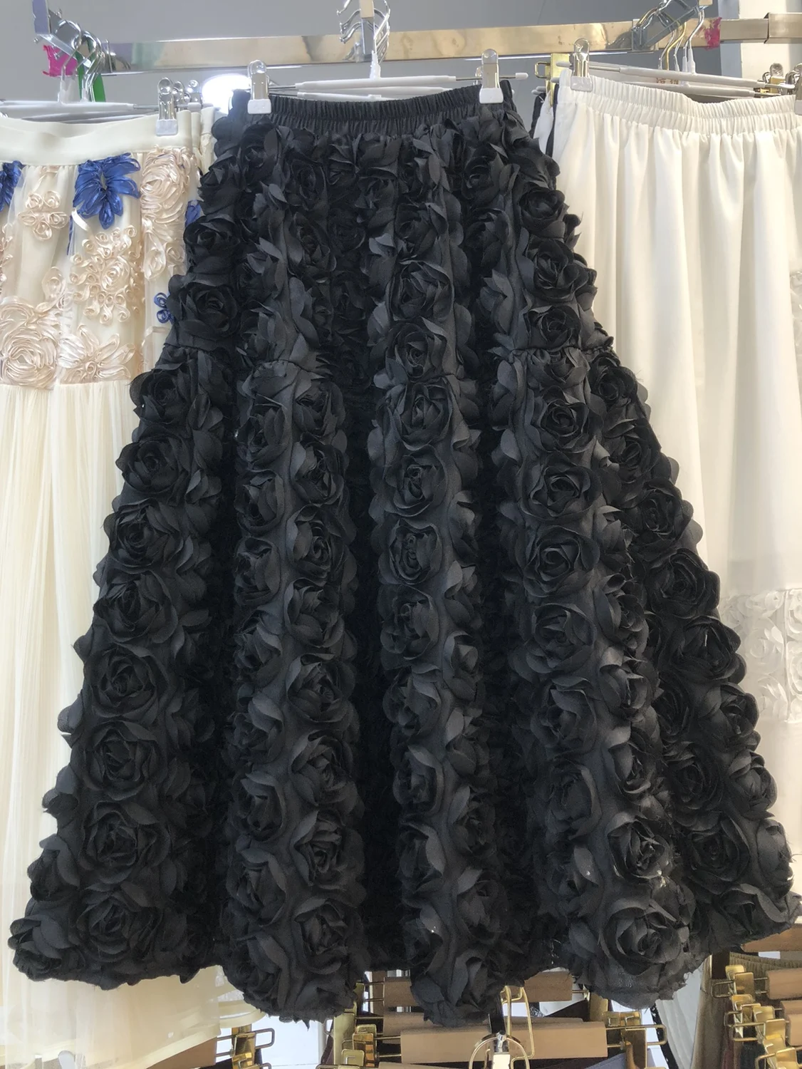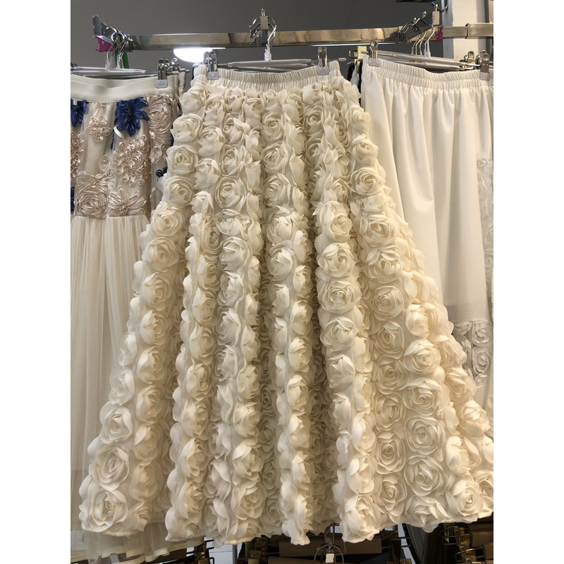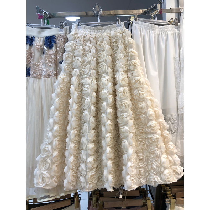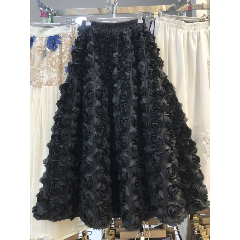 Elegant Heavy Three-Dimensional Rose Flowers Fluffy Skirt New Fashion French High Waist Large Swing A- Line Long Skirts